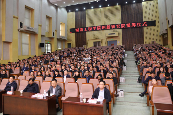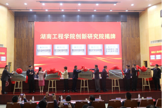 湘潭市委副书记、市长胡贺波,湖南省科技厅党组成员、副厅长周建元,校党委书记黄昕,校党委副书记、校长易兵,湘潭市政府党组成员颜晓媚共同为创新研究院揭牌。湖南省科技厅基础研究与科研条件处主要负责人、湘潭市科技局主要负责人、在校校领导、中层干部、创新研究院全体成员和教师代表参会。揭牌仪式由党委委员、副校长魏克湘主持。