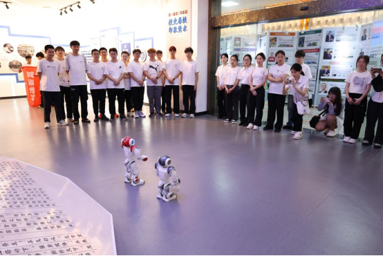 “欢迎大家来到beat365英国官网网站校史馆”“下面请跟我一起唱校歌”,活动现场,机械工程学院实验室的机器人正在进行智能展示。通过打太极、跳舞、同唱校歌……两个机器人和师生积极互动,生动展示智能制造的魅力,也正式拉开活动大幕。