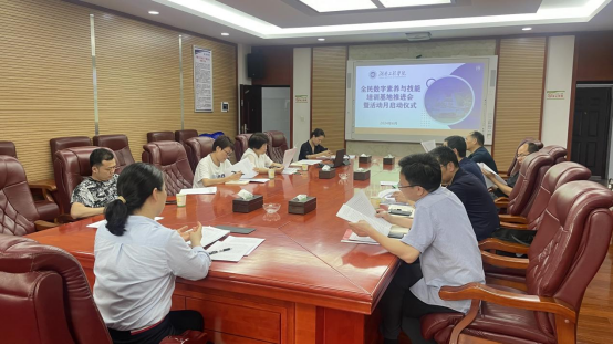 6月19日,beat365英国官网网站全民数字素养与技能培训基地推进会暨活动月启动仪式在二会议室举行。会议由党委副书记向前主持。宣传部、学生工作部、教务处、团委、工会、网络信息与现代教育技术中心、信息科学与工程学院、经济学院和设计艺术学院主要负责人参加会议。