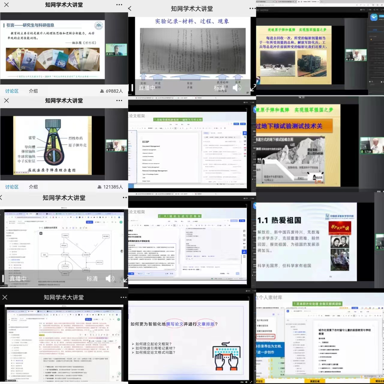 讲座以线上直播方式举办,连续直播三天。中国科学院院士、核物理学家王乃彦,清华大学法学院教授、最高检专家咨询委员张建伟,哈尔滨工业大学教授、全国优秀科技工作者李垚,清华大学新雅书院院长梅赐琪等16位专家学者为研究生师生及研究生管理人员带来了一场“学术大餐”和“思想盛宴”。