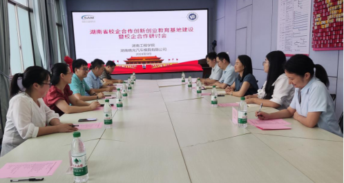 在湖南晓光汽车模具有限公司,公司党委书记、副董事长杜俊鸿接待了吴志军一行。机械工程学院党委书记陈国强首先介绍了湖南省校企合作创新创业教育基地的申请及建设规划,校企双方围绕下一步的创新创业基地建设、科研项目合作、技术转移等方面进行了积极的探讨,并达成了多项合作意向。随后吴志军和杜俊鸿一起进行了基地合作仪式的揭牌。