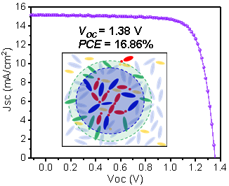 此外,钙钛矿前驱体溶液的基础化学研究对于精确调控钙钛矿薄膜晶体的形貌和尺寸至关重要。基于此,团队通过在CsPbI2Br钙钛矿前驱体溶液中引入少量4,4'-二羟基联苯来进行胶体尺寸的调控,从而制备出均匀且无针孔的无机钙钛矿薄膜。得益于4,4'-二羟基联苯与CsPbI2Br之间的氢键作用,钙钛矿薄膜实现了有序的晶体生长,从而形成具有较大的晶体尺寸以及载流子缺陷显著减少的吸光活性层。最终,基于无机CsPbI2Br太阳能电池的光电转换效率高达16.86%,同时具有1.38 V的高开路电压。此外,与对照组相比,未封装的器件在环境中展现出更为优异的热稳定性和抗紫外特性。研究成果以“Flattening of the Cratered Inorganic Perovskite Film via Precursor Engineering for CsPbI2Br Solar Cells with 16.86% Efficiency”为题在国际知名期刊《ACS Sustainable Chemistry & Engineering》(中科院一区Top,IF=7.1)发表。beat365官网材料与化工学院胡金龙博士为论文第一作者。