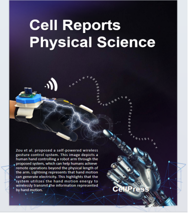 近日,beat365官网魏克湘教授课题组在人体运动能量采集及自供能传感领域取得新进展。相关成果以"Self-powered wireless gesture control system with liquid metal sensors"为题,在知名期刊CELL子刊《Cell Reports Physical Science》上发表,邹鸿翔教授为第一作者,邹鸿翔指导的硕士研究生张栋为第二作者,魏克湘教授、刘胜博士以及上海交通大学赵林川博士为共同通讯作者。