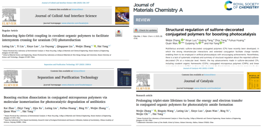 针对水环境中抗生素残留及重金属污染问题,团队以半导体光催化技术为核心,开展新型污染物协同治理研究。通过设计合成海泡石与有机高分子聚合物材料的高效异质结光催化剂,成功突破了可见光响应效率低和载流子复合率高的技术瓶颈,研发出具备重金属离子还原固定与抗生素分子氧化降解双功能的处理体系。该成果在工业废水深度处理、医疗污水净化和饮用水安全保障等方面展现出广阔应用前景,为污染物排放控制与生态环境修复提供了绿色可持续的技术方案。研究成果发表后,受到国内外学者的广泛关注。其中,题为“Prolonging triplet-state lifetimes to boost the energy and electron transfer in conjugated organic polymers for photocatalytic amide formation”(Journal of Catalysis, 2025, 442, 115898-115911)的研究,被“超分子光化学与自组装”和“有机多孔聚合物光催化”等专业公众号联合推送,总阅读量突破3000次,总转发量达300次。