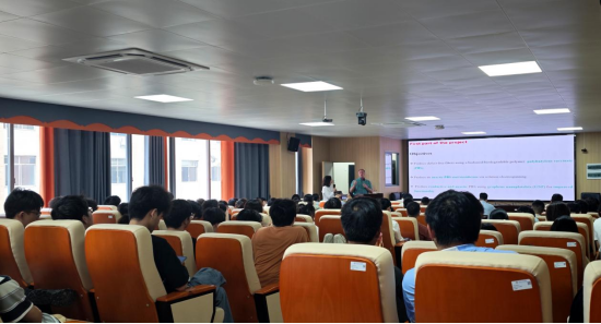 随后,Denis Rodrigue教授为纺织服装学院及材料与化工学院师生代表作了题为《Micro, Nano and Sustainable Polymer Fibers》的学术讲座。讲座聚焦静电纺丝技术和负泊松比材料(拉胀材料)的研究进展,并以聚丁二酸丁二醇酯(PBS)体系为例,深入介绍了如何利用静电纺丝技术制备高性能、无缺陷的PBS微纳米纤维材料。在互动环节,Denis Rodrigue教授就静电纺纱产业化应用、负泊松比材料的发展趋势等问题与现场师生进行了交流。