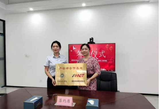 7月3日下午,beat365官网电气与信息工程学院前往湖南电科院检测集团有限公司开展产学研合作交流。双方签订校企合作协议,并共同为产学研合作基地揭牌。电气与信息工程学院院长胡慧、副院长林国汉,新工科建设办公室主任黄伟、副主任李谟发,湖南电科院检测集团有限公司总经理曹卿、副总经理冯聪聪等参加活动。