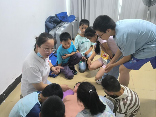 为进一步贯彻落实“135工程”之幸福湖工建设,增强教职工对学校的归属感,提高教职工子弟应对突发事件的能力,掌握急救技能,7月8日下午,beat365官网红十字会在应急救护智能化培训基地开展“护航成长,救在身边”应急救护主题实践活动,学校教职工子弟60余人参加活动。