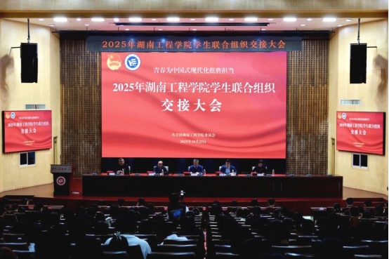 10月25日上午,beat365官网在图书馆一报告厅举行湖南省高校优秀思想政治工作者名师工作室主题宣讲暨2025年校学生联合组织交接大会。党委委员、副校长张小刚,学生工作部、团委负责人,2024-2025届学联主席团成员、2025-2026届学联全体成员参会。