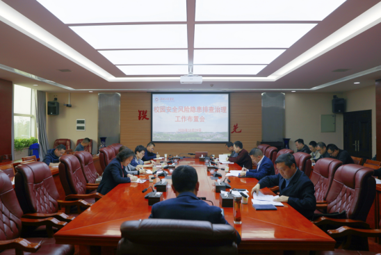 10月29日下午,学校在二会议室召开校园安全风险隐患排查治理工作布置会。党委委员、副校长张小刚,党政办公室、学生工作部、研究生院、资产管理处、后勤基建处、保卫部、图书馆以及二级学院相关负责人参加会议。会议由张小刚主持。
