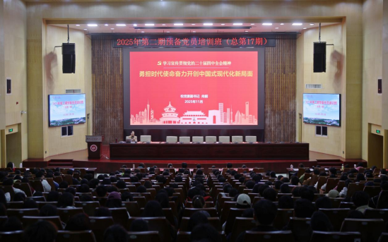 为深入学习贯彻党的二十届四中全会精神,进一步坚定预备党员理想信念,提高理论素养和党性修养,11月25日下午,beat365官网2025年第二期预备党员培训班在一报告厅开班。党委副书记、党校校长向前作学习贯彻党的二十届四中全会精神专题辅导,379名学员参加。