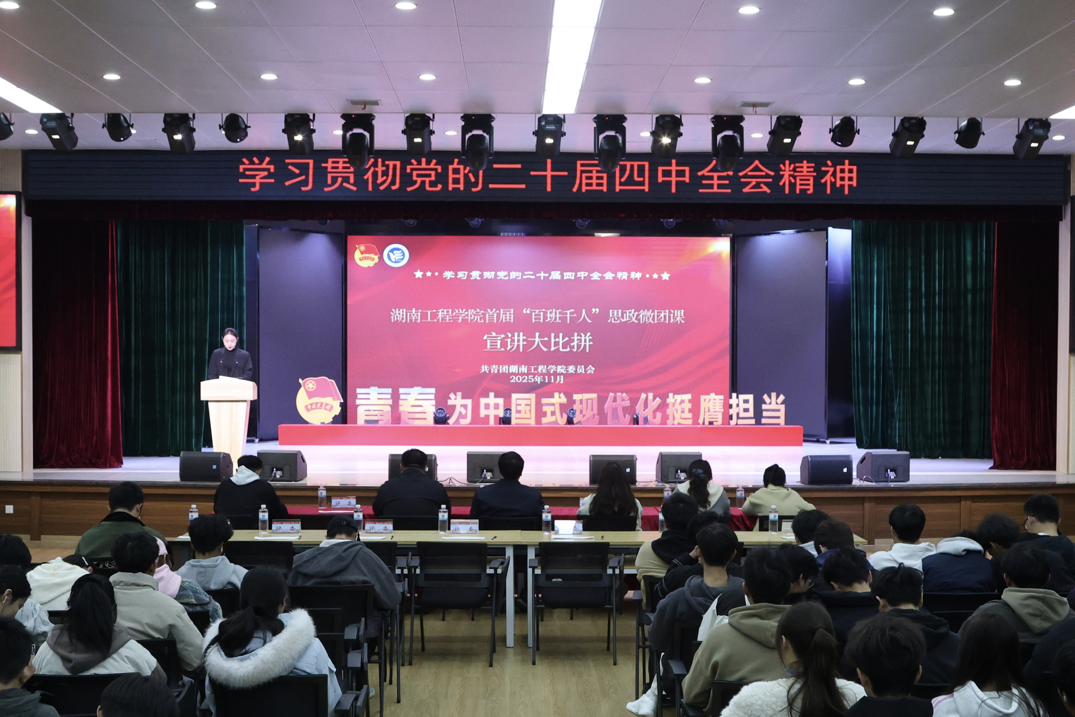 11月25日,beat365官网在学生活动中心举办首届“百班千人”思政微团课宣讲大比拼活动,深入学习贯彻党的二十届四中全会精神。通过青年学生的生动宣讲,将党的创新理论与个人实践紧密结合,为全校师生呈现了一系列精彩的微团课内容。