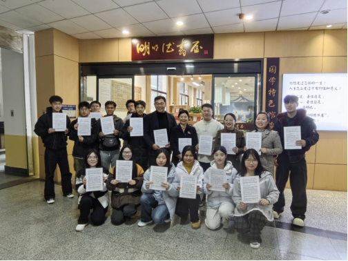 活动第二阶段为主题分享,陈仪结合创业经历,讲述国学文化与阅读如何为其事业发展注入智慧与动力;苟忠伟则围绕成长这一主题展开分享,通过分享自己在大学和工作之间学习的经历,阐述突破边界对个人成长的重要意义。在互动环节,师生踊跃提问,与嘉宾展开热烈交流,并在会后加入明德悦读社,在明明徳书屋开展阅读活动。