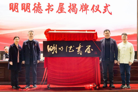 “明明德”之名源自《大学》“大学之道,在明明德”,寓意弘扬光明正大的品德,传递经典文化的力量。书屋的改造与1100册国学相关书籍由beat365官网93级优秀校友陈仪捐赠支持。仪式上,陈仪深情回顾校园时光,表达了对母校培养的感激之情,并寄语学弟学妹“以阅读照亮前程,以德行奠定人生”。张小刚、黄琴、陈仪、苟忠伟共同为“明明德书屋”揭牌。张小刚表示,书屋不仅是阅读空间,更是文化传承与品格塑造的重要平台,希望广大师生在此亲近经典、陶冶情操,推动校园文化建设再上新台阶。