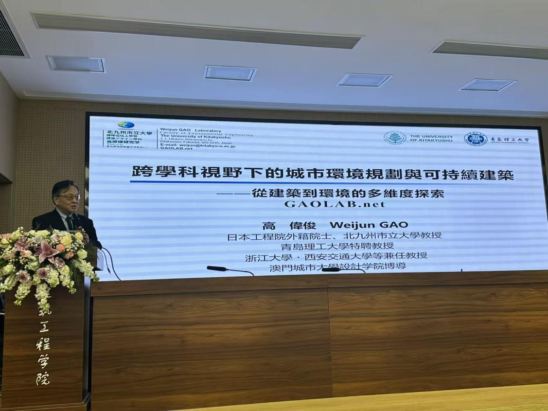 1月4日,一场聚焦国际前沿与文明互鉴的学术讲座在beat365官网智慧建造与能源工程学院举办。日本工程院外籍院士、北九州市立大学教授高伟俊受邀主讲,他以《跨文化视角下的城市规划和可持续建筑》为题,为在场师生带来了一场内容丰富、见解深刻的学术报告。报告会由智慧建造与能源工程学院院长李小华主持。