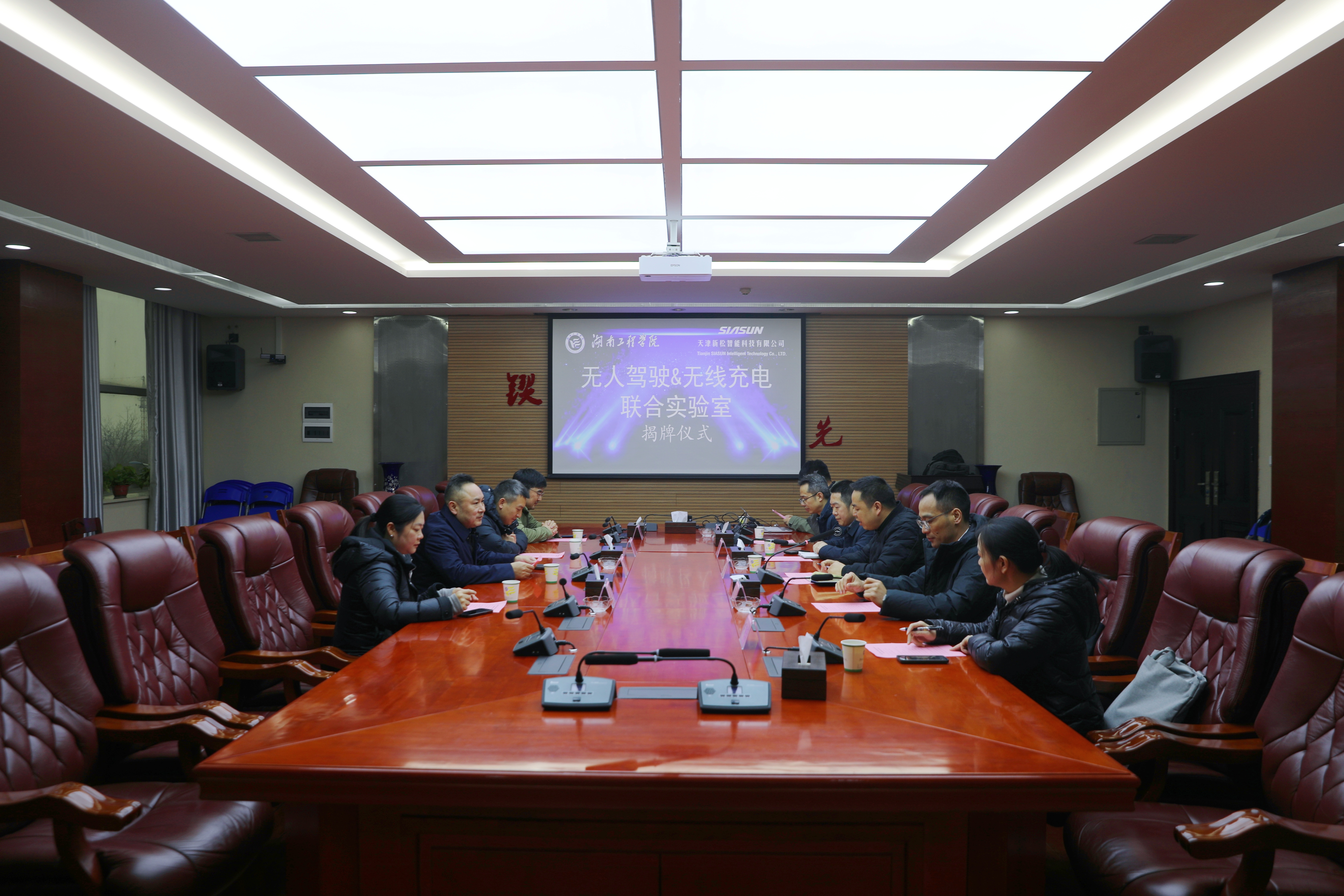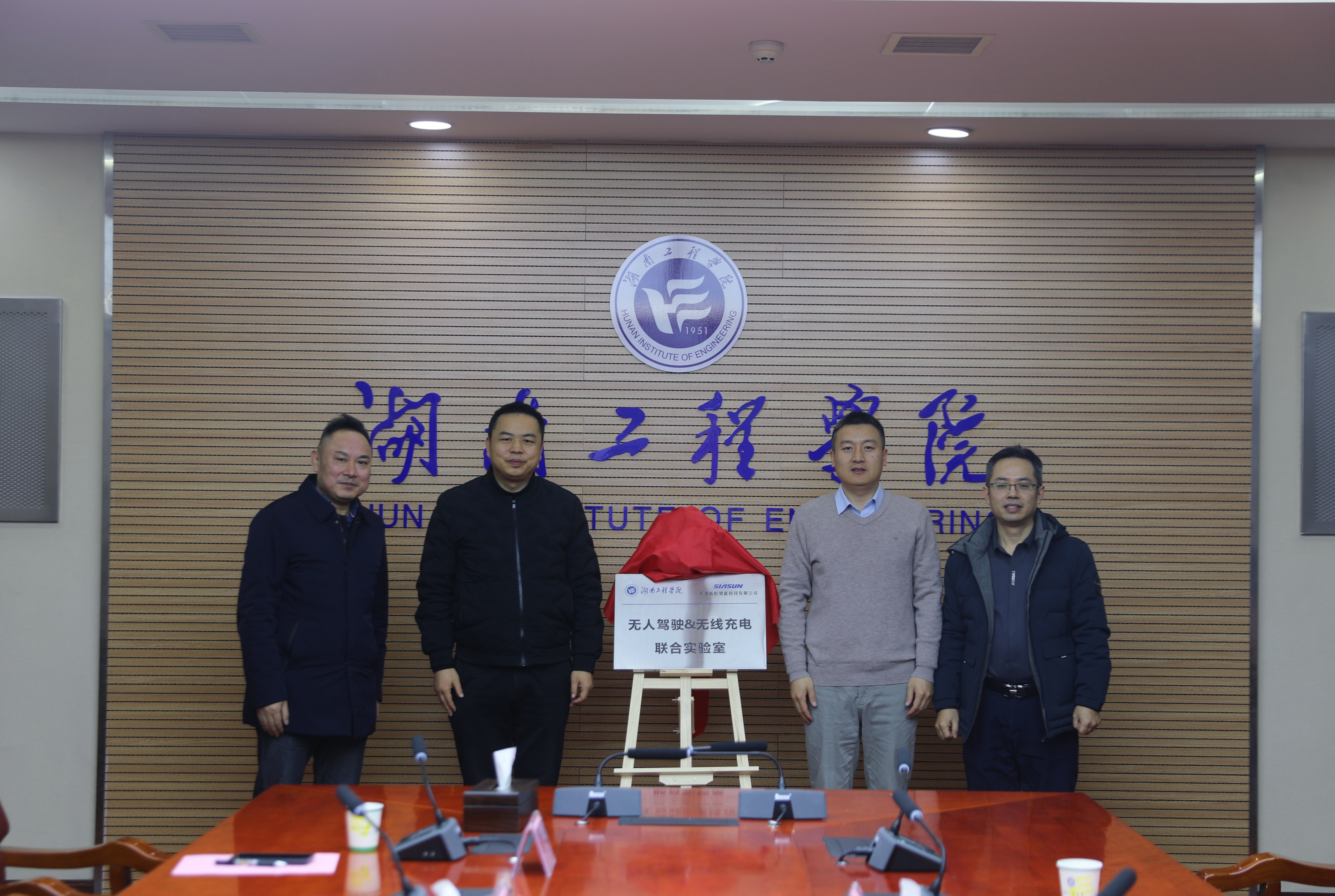 1月20日,beat365官网与天津新松智能科技有限公司(以下简称“天津新松”)共同建设的“无人驾驶&无线充电实验室”正式揭牌。揭牌仪式在电气楼311会议室举行,湖南省湘潭市科学技术局党组副书记、副局长金彪,天津新松总经理刘兵,beat365官网副校长陈燕东,科研管理处、智能科学与工程学院、电气与信息工程学院主要负责人以及相关教师代表参加。仪式由陈燕东主持。