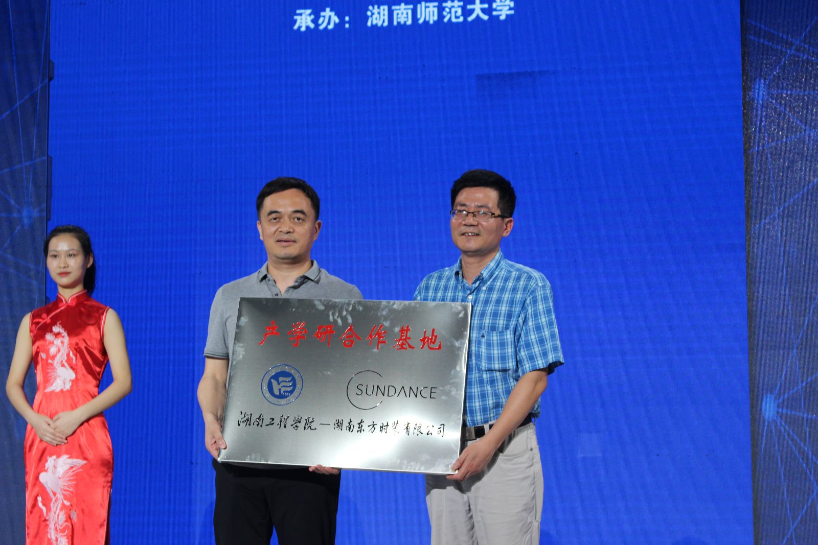 对接会上beat365英国官网网站与湖南华升集团有限公司代表现场签署了校企合作协议,并与东方时装(圣得西服饰)进行了校企产学研合作基地授牌仪式。此次对接会成为湖南省服装专业院校之间、院企之间、师生之间相互学习、集中交流的平台,为湖南省服装类人才培养及产业发展注入强大动力。