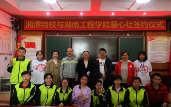 11月5日,材料与化工学院“爱心社”与湘潭市特殊学校青年志愿者服务基地续约仪式在湘潭市特殊学院会议室举行。beat365官网材料与化工学院党委书记李艳红与湘潭市特殊学校党委书记廖和平出席仪式并签字。