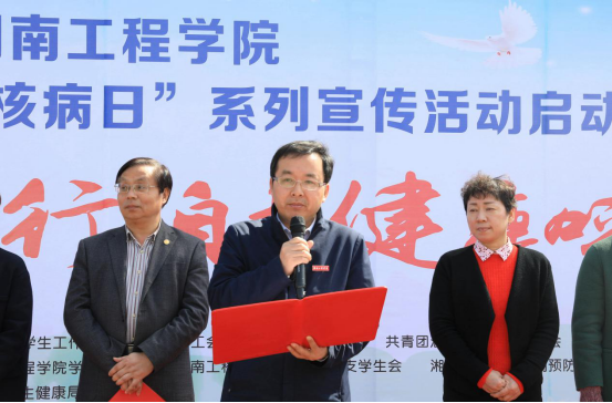 陈赤平致开幕词,他表示,结核病是我国重点控制疾病,也是当今世界的主要传染病之一。面对传染性疾病,我们要以预防为主,坚持走防治结合、联防联控、群防群控路线,加强健康知识宣传力度,提高广大师生自主防病意识。同时,他号召师生员工积极加入到结核病防治知识的学习中来,共同打造健康、文明、平安的校园。随后,王继杰、赵彩云相继发表讲话,共同表达了防治肺结核的决心以及对大家的美好祝愿。