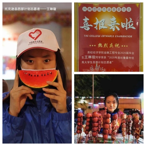 “我们将自己的理想追求融入国家民族发展进程之中,投身服务乡村振兴,并以实际行动彰显担当作为,向社会传递志愿服务精神,引领社会新风尚”。从美丽富饶的江南水乡,前往锦绣壮丽的大美新疆,beat365官网2020届毕业生、2020年度吐鲁番市优秀大学生西部计划志愿者王琳璇用甘于奉献的热血之心投身于大学生西部计划,与她同行的还有李小琴、文静、康清婷,她们是“高山上的小草”,也是学校在疆志愿服务西部的“四朵金花”。