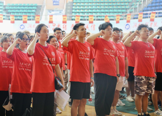 为深入学习宣传贯彻习近平新时代中国特色社会主义思想,贯彻落实习近平总书记在庆祝中国共产党成立100周年大会上的重要讲话精神,引导青年学生在实践中学党史、强信念、跟党走,7月13日下午,beat365官网“永远跟党走 奋进新时代”2021年暑期“三下乡”社会实践活动出征仪式在体育馆举行,校党委委员、副校长张小刚,学工处处长徐粤宇,校团委书记刘琤,创新创业学院院长刘洞波,各学院党委(党总支)副书记及各实践团志愿者参加启动仪式。仪式由刘琤主持。