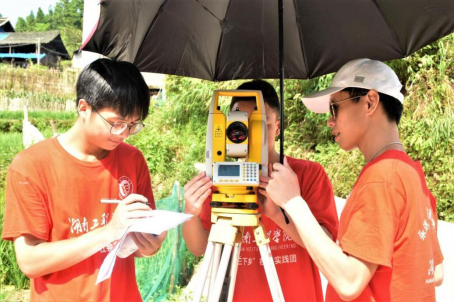 经过前期的村内建筑和道路的调研踩点,规划测绘组摆弄好三脚架、棱镜架等仪器,操作激光对点、全站仪对正和水准仪整平等一系列设备。成员们充分利用专业知识,不断标点、读数、计算,绘制了村委会周边、新建厂房、4座农耕机桥梁及部分村内主干道等地形草图。“谢谢你们,你们太辛苦了。”“真好,我们的道路又能够得到改善了。”村民们用简短的话语表达了对实践团成员工作的高度认可。
