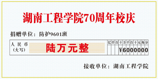 在母校建校七十周年之时,带着对母校深深的热爱与眷恋,带着对学弟学妹的殷殷期盼与关怀,防护9601班的同学们发起班级捐款6万,为母校带来一份温暖的祝福。