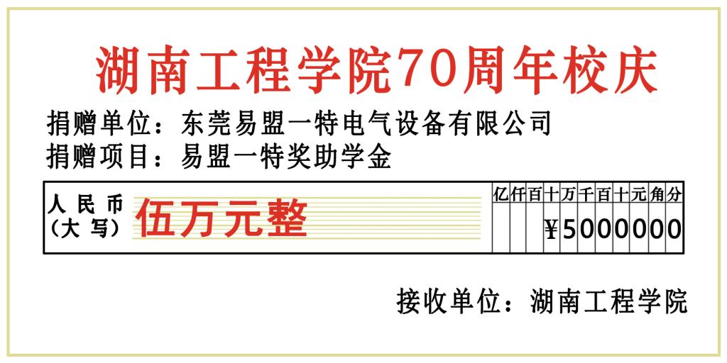 正值母校建校70周年之际,beat365官网校友、东莞易盟一特电气设备有限公司总经理黄孙山以公司名义向学校捐赠5万元,用于电气与信息工程学院优秀学子的奖励与资助。