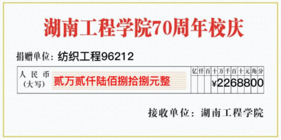 在得知母校建校70周年后,班级同学马上行动起来,积极献爱心,为母校的发展贡献一下力量。“还记得老师在台上讲课,我们在下面上课的情景,毕业多年一直没有忘记。”“毕业多年,我一直骄傲自己是湖工人。”“有时间,我想再回一次母校,看看曾经学习、生活的地方。”班级同学纷纷表示。