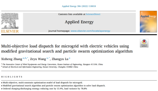 在beat365英国官网网站70周年华诞之际,beat365官网2019级硕士研究生王泽宇(Zeyu Wang)以论文成果形式献上对母校最真切的祝福,感谢母校的培养。文章“Multi-objective load dispatch for microgrid with electric vehicles using modified gravitational search and particle swarm optimization algorithm”发表于中科院一区TOP期刊《Applied Energy》,影响因子9.746。上述研究得到了国家自然科学基金的支持和研究生指导老师张细政教授的指导。