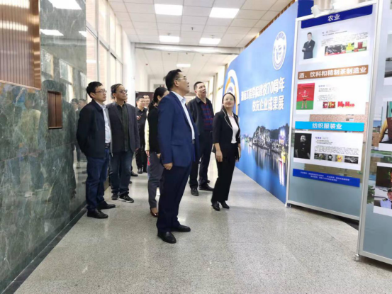 校友在观看校友企业成果展后,参观校史馆,了解学校70年波澜壮阔的奋斗历程,传承“湖工”优良文化,共忆往昔青春岁月。