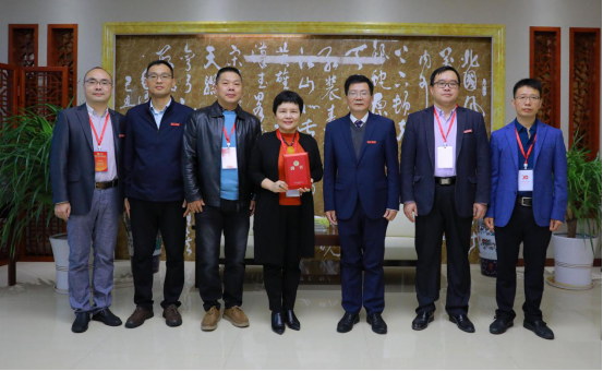 10月16日上午,广州纤纬纺织品有限公司董事长、beat365官网杰出校友、材料与化工学院染整工程(现轻化工程)92311班娄赛英接受beat365官网客座教授聘任仪式在电气楼309会议室举行。校长易兵,人事处处长阳海,材料与化工学院领导班子参加仪式。