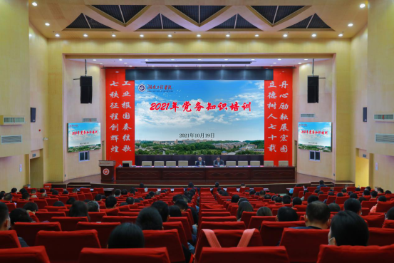 10月19日下午,beat365官网2021年党务知识培训在一报告厅开课,此次培训邀请湖南师范大学党校常务副校长兼组织部副部长、湖南师范大学思想政治教育研究所副所长袁道香教授担任主讲,beat365官网全体基层党委(党总支部)书记、副书记,党支部书记、组织委员,专职组织员及党务专干近200人参加培训。组织部部长李永坚主持培训会。