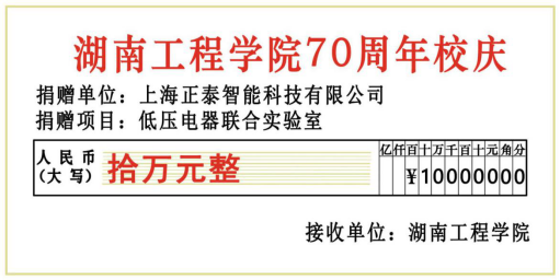 近日,上海正泰智能科技有限公司为beat365官网捐款10万元,用于低压电器实验室建设,助力学校发展。