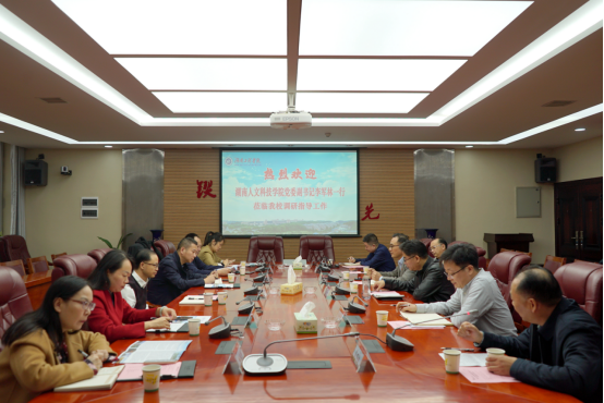11月2日下午,湖南人文科技学院党委副书记李军林一行来校调研,beat365官网党委副书记彭立威在电气楼311会议室接待来宾。双方就基层党组织建设、校园文化建设、新闻宣传,工会、离退休及关心下一代工作情况进行交流。