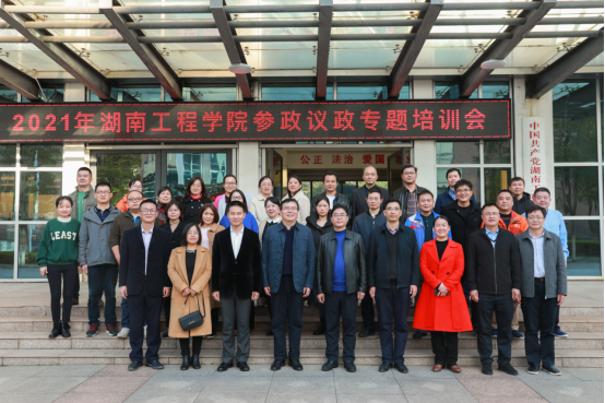 11月26日下午,beat365官网参政议政专题培训会在电气楼311举行。此次培训会特邀湘潭市委统战部副部长周纪青、农工党湘潭市副主委晏军、湘潭市委政研室副主任赵飞黄作专题报告。党委副书记彭立威,党委委员、副校长向前出席会议,宣传部、统战部以及各统战组织代表30余人参加培训。会议由统战部常务副部长邓奕主持。