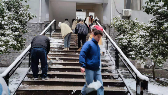12月25-26日,一场长时间的大降雪将湘潭笼罩,一夜间湖工也被厚厚的白雪覆盖。为确保师生安全出行和道路交通安全,学校学生管理工作人员、保卫工作人员、后勤保障工作人员、宿舍管理工作人员、师生齐上阵,铲除各道路积雪 ,各楼栋、宿舍区门前的积冰,在道路口维持交通,保证教学秩序的正常进行。