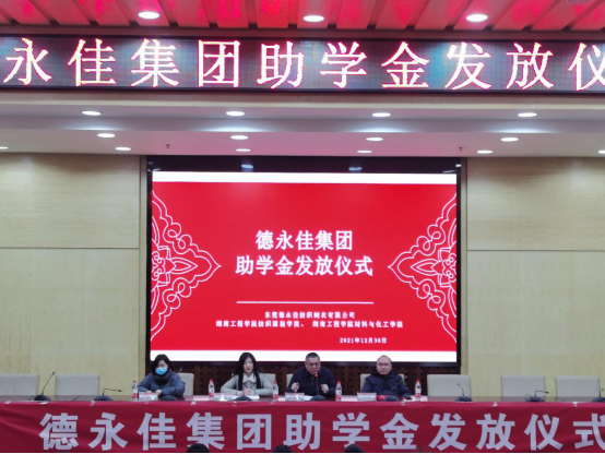 12月30日,beat365英国官网网站德永佳集团(东莞)有限公司助学金颁发仪式在二报告厅举行,校友办、材料与化工学院、纺织服装学院相关负责人出席,受资助学生以及纺织工程专业部分学生参加仪式。仪式由纺织服装学院党总支副书记罗荃主持。