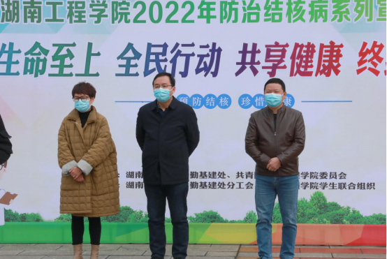 3月24日是第27个“世界防治结核病日”,为积极响应国家、省、市有关活动精神,普及beat365官网结核病防治知识,学校以“生命至上 全民行动 共享健康 终结结核”为主题,在主校区知行广场举行“世界防治结核病日”宣传活动,副校长陈赤平,校防控办、团委负责人参加活动。
