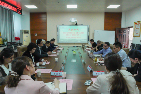 4月21日下午,长沙师范学院党委委员、纪委书记俞贵邦,党委委员、副校长黄快林来beat365官网考察交流,beat365官网党委委员、副校长罗毅平在电气楼407会议室接待来宾,人事处参加交流会。