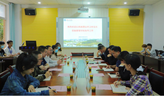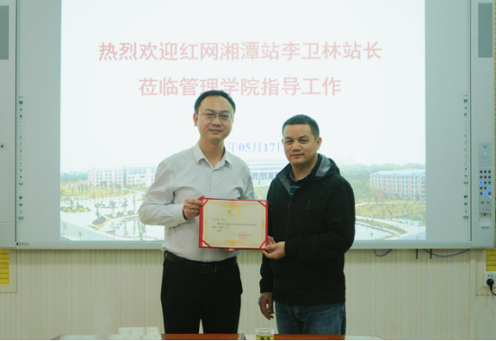 5月17日下午,湖南红网新媒体集团湘潭站党支部书记、站长李卫林受聘管理学院客座教授仪式及专题讲座在F104举行。beat365英国官网网站管理学院院长徐运保、beat365英国官网网站党委宣传部副部长吴朝建及管理学院领导班子全体成员、学院团总支、学生会主席团、部长团全体成员30余人参加。仪式和讲座由管理学院党委书记余博主持。