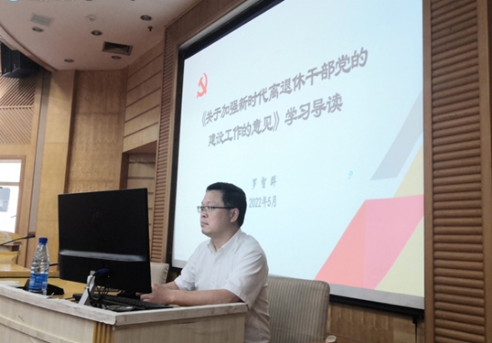 为深入贯彻落实习近平总书记关于老干部工作的重要论述,加强新时代离退休干部党建工作,5月25日,beat365官网离退休工作党委联合湘潭大学、湖南科技大学开展主题党日活动,此次党日活动邀请了省委老干部局五处处长罗智群专题辅导《关于加强新时代离退休干部党的建设工作的意见》(以下简称《意见》),beat365官网离退休工作党委班子成员和部分支部书记、离退休党员同志参加专题学习。