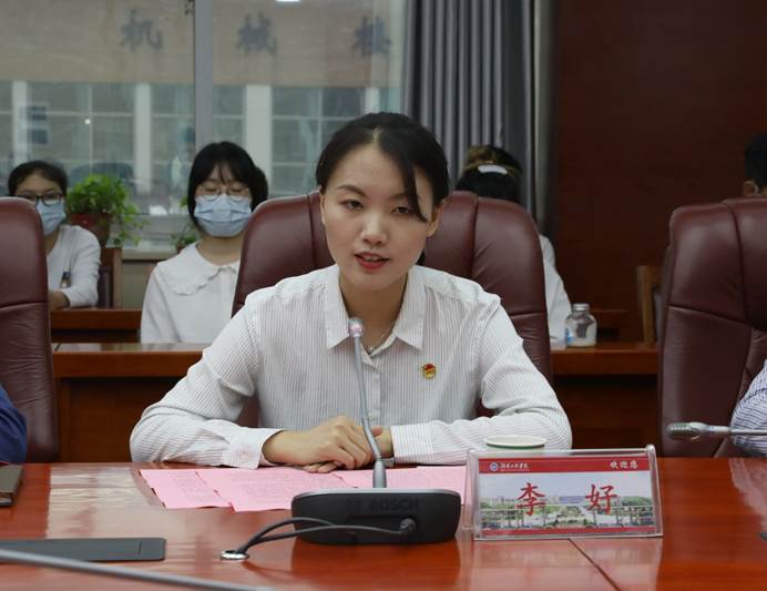 李好结合自身工作经验及此次获得“全国优秀共青团员”的感受与学弟学妹分享体会,一是锚定方向,点亮信念之光;二是勇于创新,勇立时代潮头;三是把握机遇,不负青春韶华。她倡议团员们要牢记习近平总书记嘱托,争做爱国者、奋斗者、创新者、奉献者、实干家,以社会主义建设者和接班人的使命担当,将个人“小我”融入民族“大我”,为实现中华民族伟大复兴中国梦贡献青春力量。