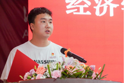 在校生代表经济学1982班龙贺君感恩学长学姐们的无私帮助,并为毕业生送去诚挚的祝福:乘风破浪、前程似锦!