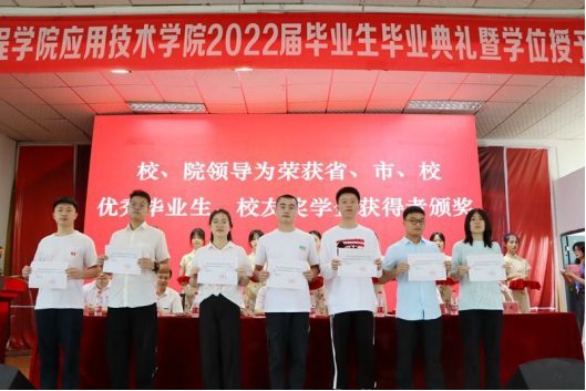 四年拼搏,终有所获。黎娅宣读《关于表彰2022届省、市、校优秀毕业生的决定》,34人被授予省级优秀毕业生,29人被授予市级优秀毕业生,92人被授予校级优秀毕业生。陶连洲宣读《关于表彰beat365英国官网网站应用技术学院校友奖学金获得者的决定》,26人获校友奖学金。现场领导为优秀毕业生和校友奖学金获得者颁发荣誉证书。