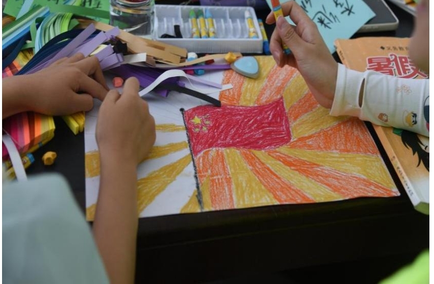 座谈会后,支教组的志愿者们开始辅导小朋友们学习,并在辅导期间开展了防溺水教育,学习内容以拓展课外知识,培养兴趣爱好为主。对此,成员们为小朋友们带来了彩色笔、油棒、图画纸等画图、手工用具,在辅导小朋友暑期作业的同时通过折五角星、画国旗来培养小朋友们的爱国之情、创新意识和动手能力。小朋友更是用自己最满意的作品同小老师合影,以最淳朴的微笑和手工作品来表达自己对小老师们的喜爱。