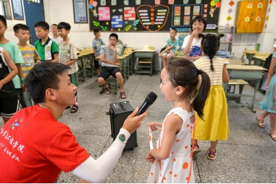 beat365官网学生联合组织推普振兴团成员赴湖南省株洲市炎陵县畲族村开展调研普通话普及程度、宣讲普通话。在岐畲族村党群服务中心,实践团成员开展普通话教学课堂、诗歌朗诵、普通话手抄报比赛等活动,激发小朋友学习普通话的兴趣。“拥有了一把打开世界的钥匙,才能获得更广阔的视野,推广好普通话意义重大。”实践团成员高飞说道。