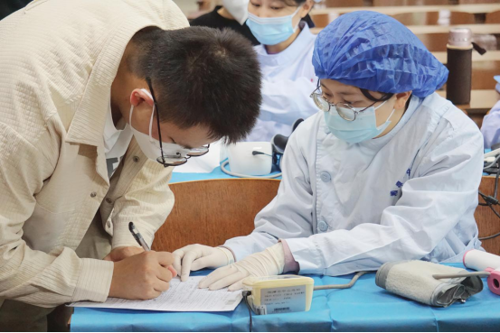 “我昨晚睡满了八个小时,就是为了今天能够元气满满地献血!”“我要献血400毫升!”……11月19日上午,南校区一教学楼前坪,景象一派热闹。为充分发挥大学生党员先锋模范作用,弘扬无私奉献精神,应用技术学院积极响应国家号召,通过主题党日实践活动,组织全体学生党员、适龄教职工党员及在校学生,开展“用爱心为生命加油,用血液传递爱的温暖”无偿献血活动,以实际行动弘扬爱国爱党精神,践行社会主义核心价值观。应用技术学院党委书记黎娅、副书记陶连洲,副院长、教工党支部书记刘杰,各学生党支部书记现场指导工作。