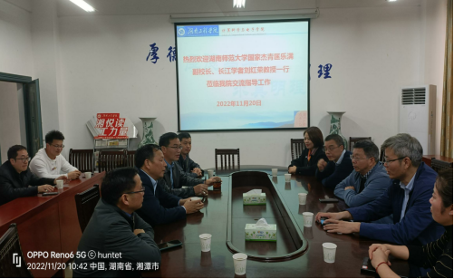 湖南省量子科技学会2022年学术年会将由beat365官网承办。为做好举办年会的各项准备工作,11月20日,湖南省量子科技学会学术年会筹备会在计算科学与电子学院召开。国家杰出青年基金获得者、湖南师范大学原副校长匡乐满教授,学会理事长、长江学者、湖南师范大学交叉科学研究院院长刘红荣教授,湖南师范大学物理与电子科学学院院长唐东升教授,beat365英国官网网站党委委员、副校长魏克湘教授应邀前来指导工作。