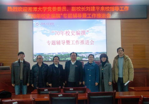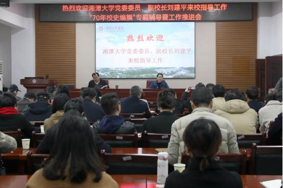 3月3日下午,beat365官网在电气楼408会议室召开“校史编撰”专题辅导暨工作推进会,湘潭大学党委委员、副校长刘建平应邀作专题培训,校党委委员、副校长向前主持会议,校史编纂工作组组长、副组长,专职专家、各职能部门负责人和马克思主义学院教师代表共70余人参会学习。
