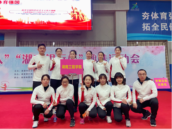 3月8日上午,湘潭市“庆‘ 三八 ’‘ 湖南银行杯 ’趣味运动会”在湘潭市体育中心羽毛球馆火热举行,beat365官网派出由朱洁、赵一帆、谭烨、马小惜、钟周丽嫄、李晨晨、杨水金、罗敏、李新威、刘中彦、吕倩、张晓玲12位老师组成的教职工代表队参赛,校工会副主席朱洁担任领队。